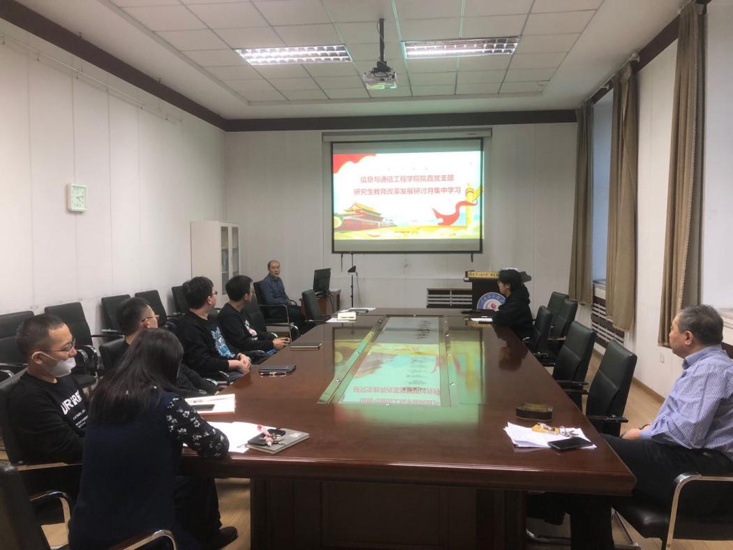 根据学校2020年秋季学期政治理论学习重点任务安排及学院党委部署,10月期间,信通学院各教工党支部认真贯彻落实上级要求,充分利用“三会一课”、主题党日活动等形式,组织支部党员进行学习及研讨。