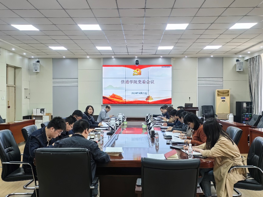 4月23日上午,信通学院党委召开党纪学习教育部署会,传达落实学校党纪学习教育工作部署会精神,党委书记王锐主持会议并讲话,动员部署全院开展好党纪学习教育。