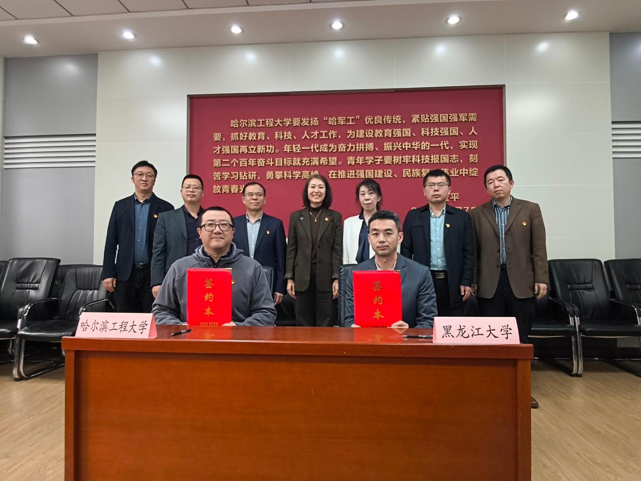 潘大鹏和兰国强代表122cc太阳成集团电工电子国家级实验教学示范中心师生联合党支部和黑龙江大学电子工程学院电工电子中心党支部签订党建共建协议。