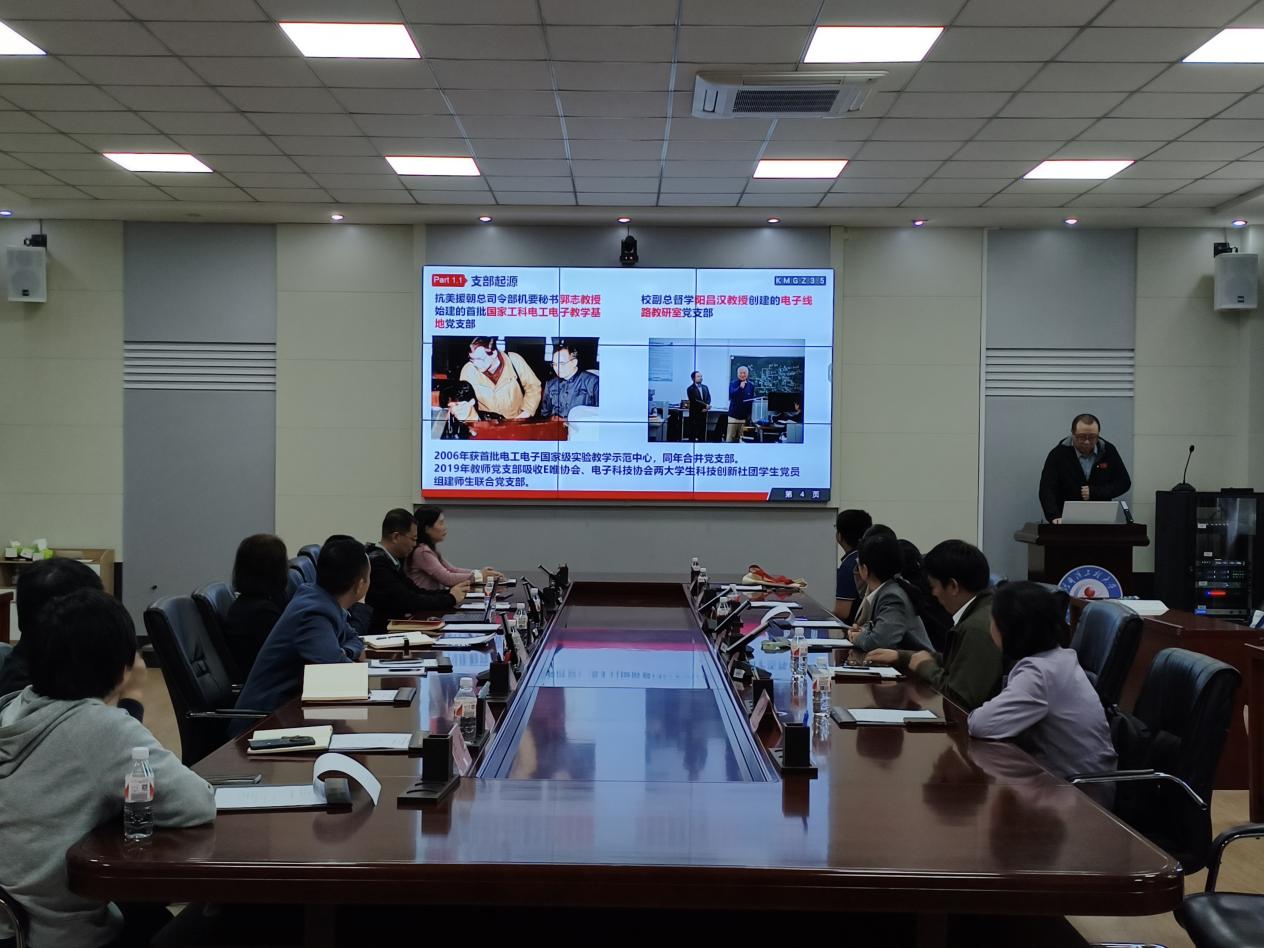 华中科技大学电信学院教学实验中心主任、党支部书记邓天平和122cc太阳成集团电工电子国家级实验教学示范中心师生联合党支部书记潘大鹏分别就各自党支部的基本情况、组织架构、党员队伍情况、党建特色活动进行详细介绍,展示了支部在党建与教学深度融合方面的积极探索和实践成果。