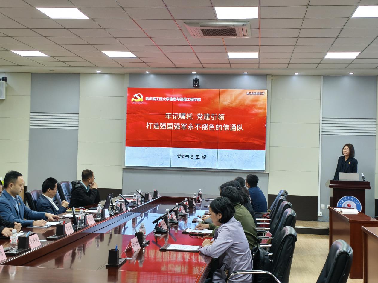 党委书记王锐致欢迎辞,并以“牢记嘱托党建引领打造强国强军永不褪色的信通队”为题,介绍学院传承“哈军工精神”,贯彻落实习近平总书记视察学校重要讲话精神的党建工作举措和教学、科研、人才培养等工作取得的成效。